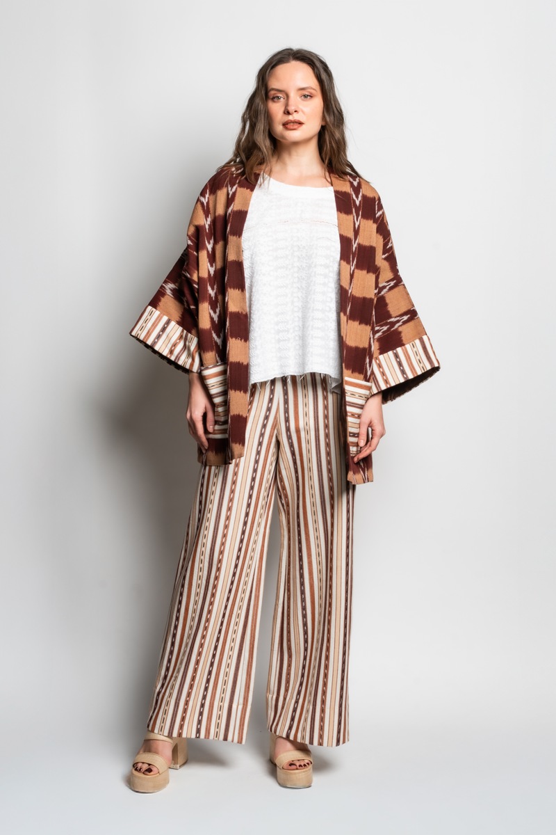 Kimono (Tela: beige con rayas negras, plateadas, blancas)