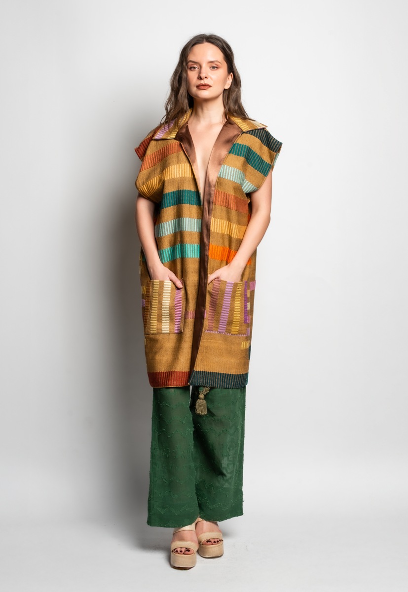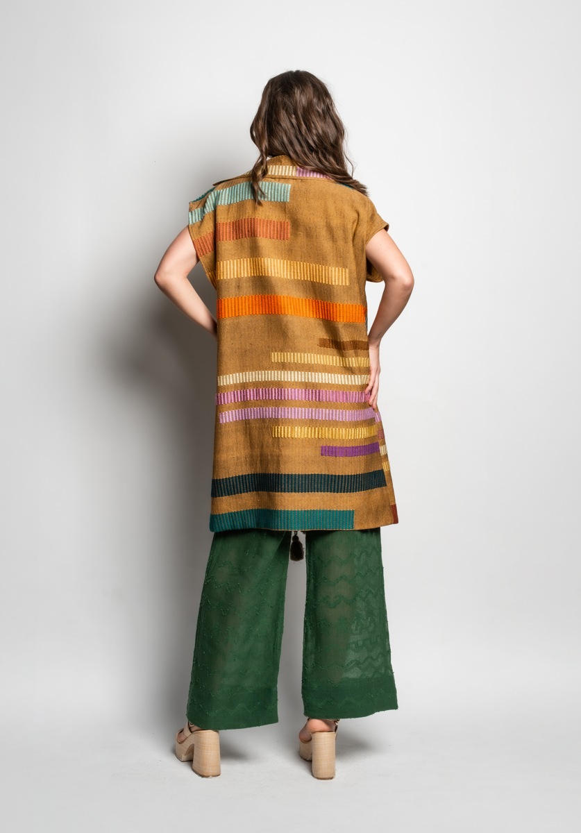 Long coat and pants (Tela mostaza con rayas colores)