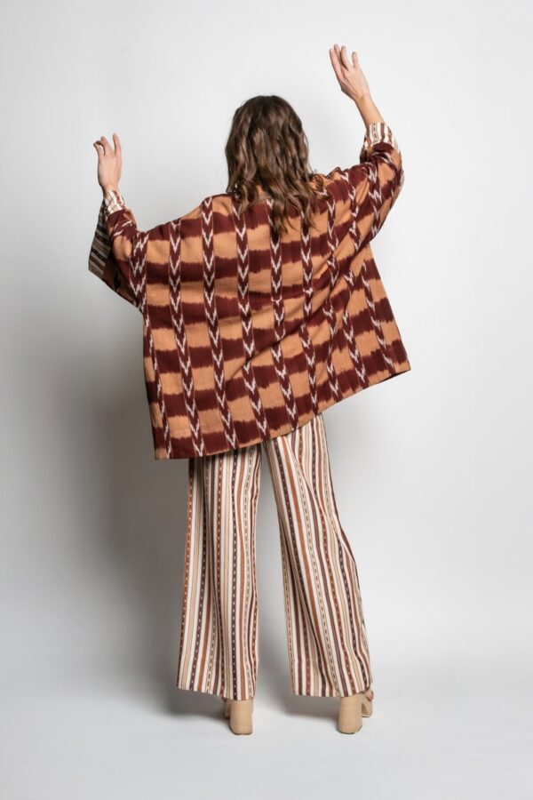 Kimono (Tela: beige con rayas negras, plateadas, blancas)