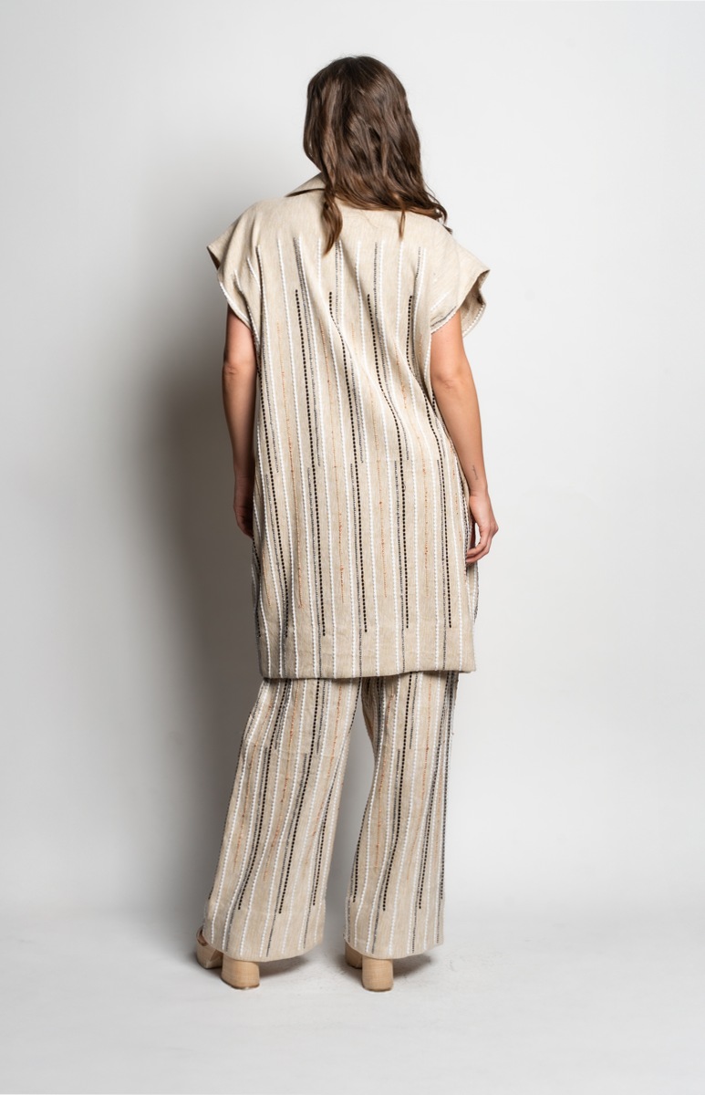 Pants (Tela: beige con rayas negras, plateadas, blancas)