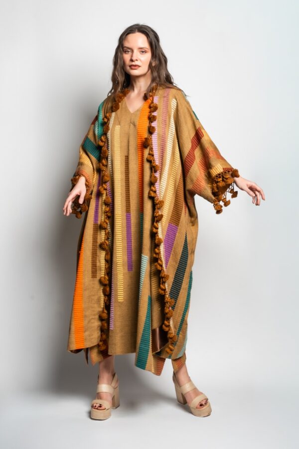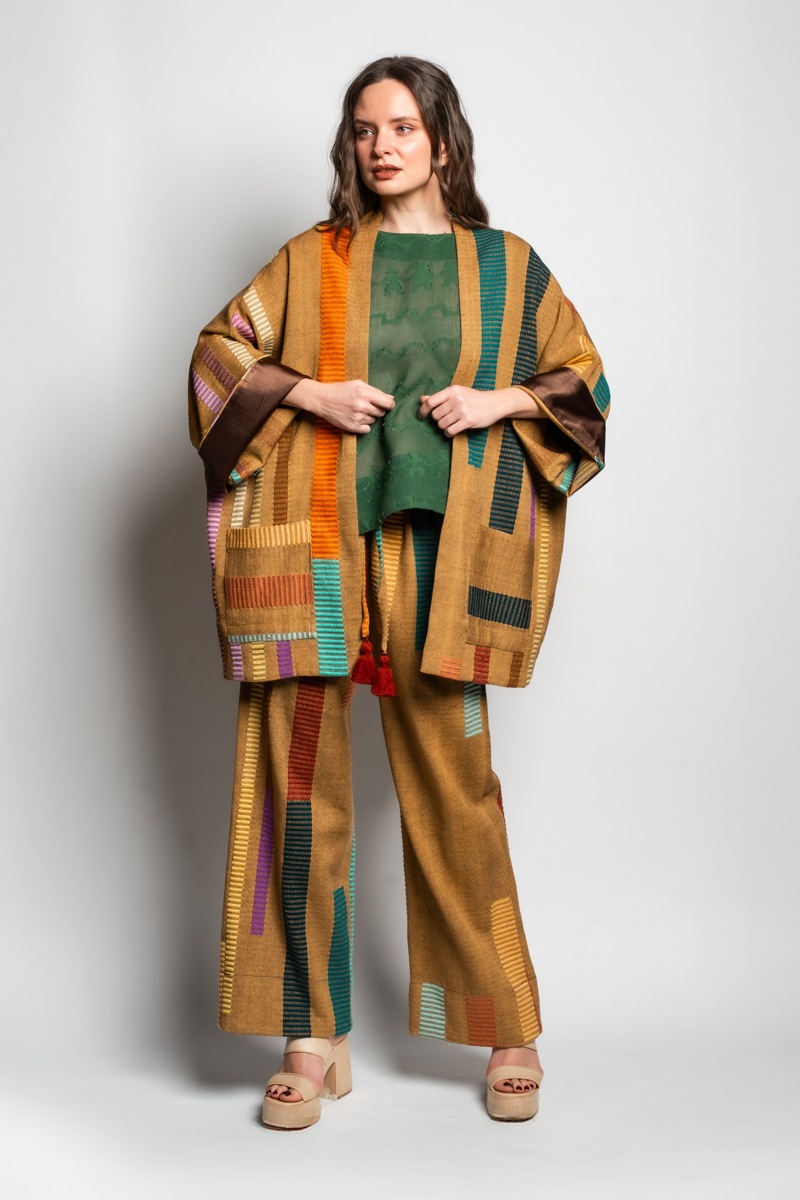 Kimono (Tela mostaza con rayas colores)