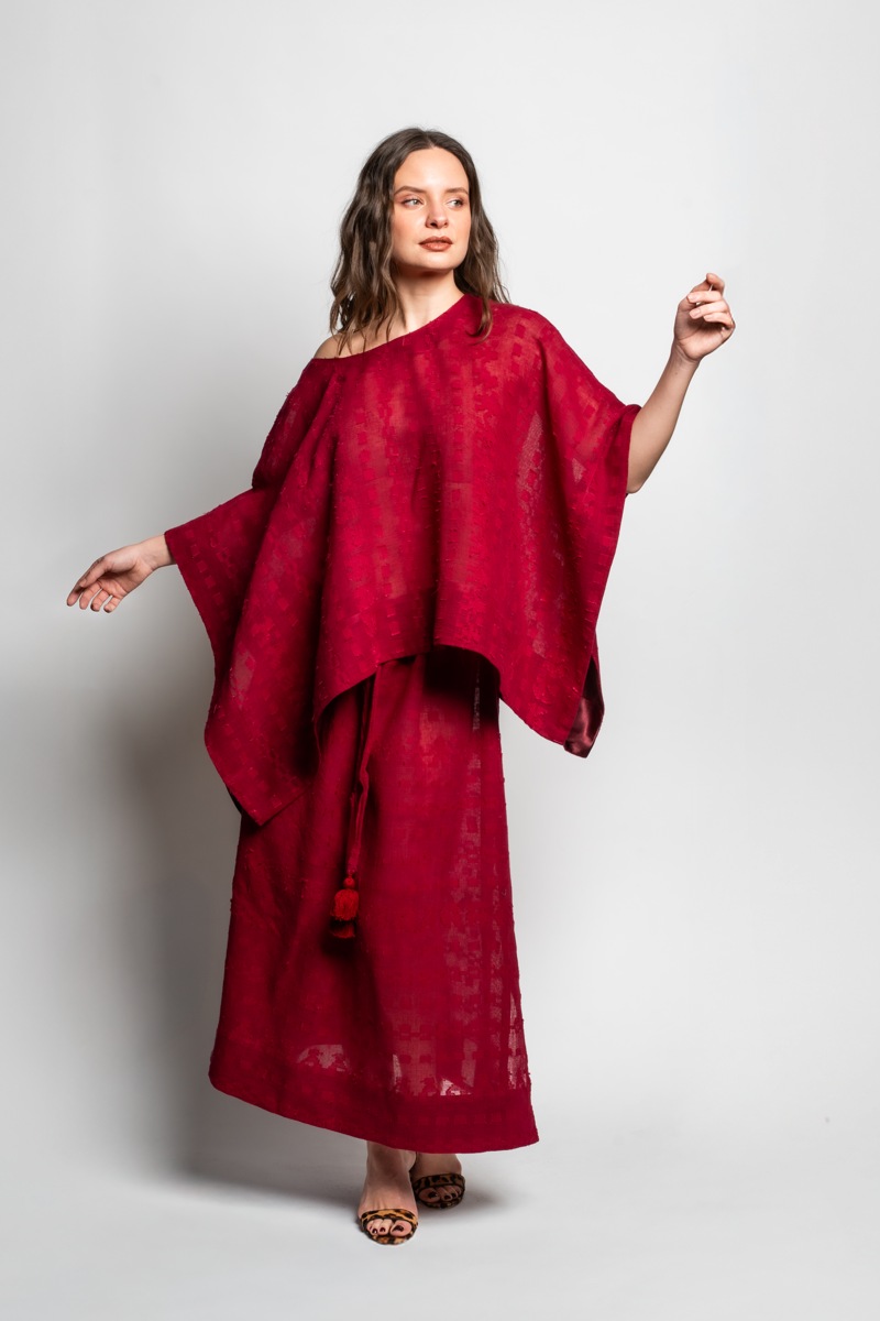 Kimono (Tela: beige con rayas negras, plateadas, blancas)