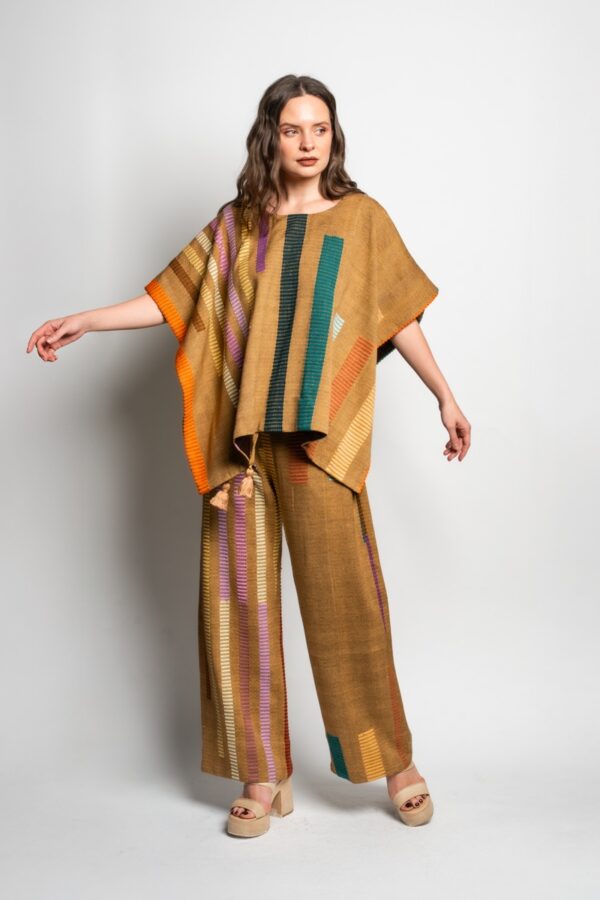 Pants (Tela: beige con rayas negras, plateadas, blancas)